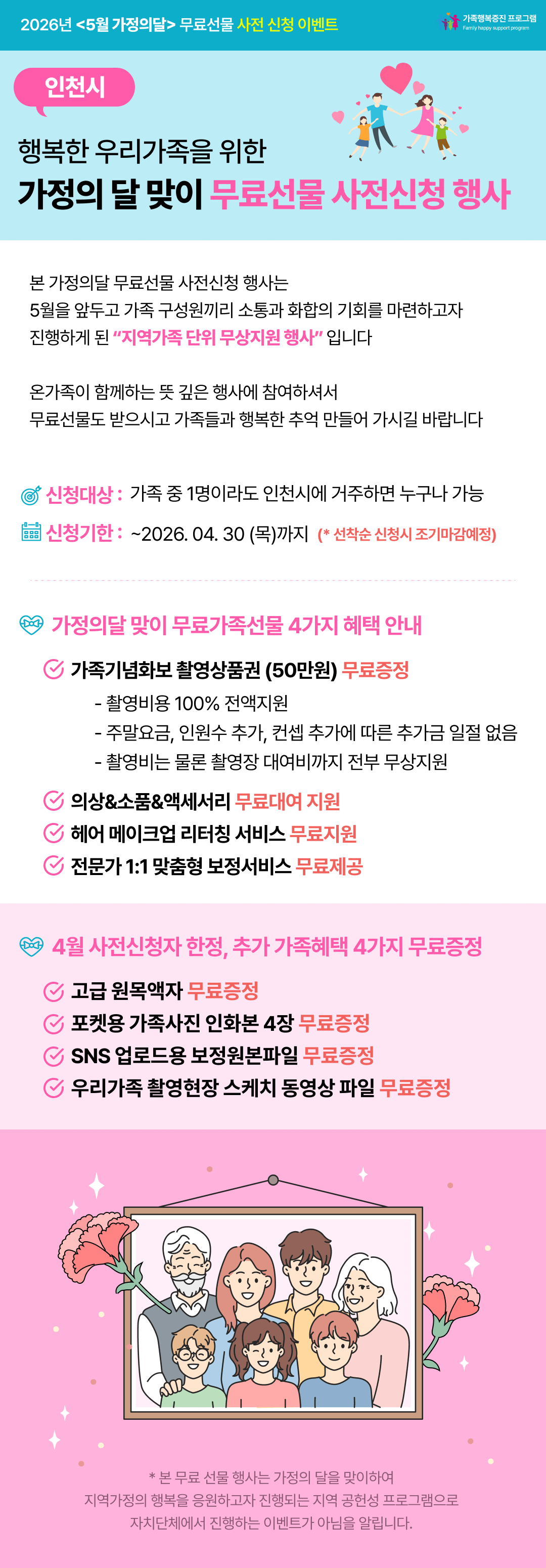 인천시 가정의 달 맞이 무료선물 사전신청 행사 — 4월 신청자 한정, 선착순 마감